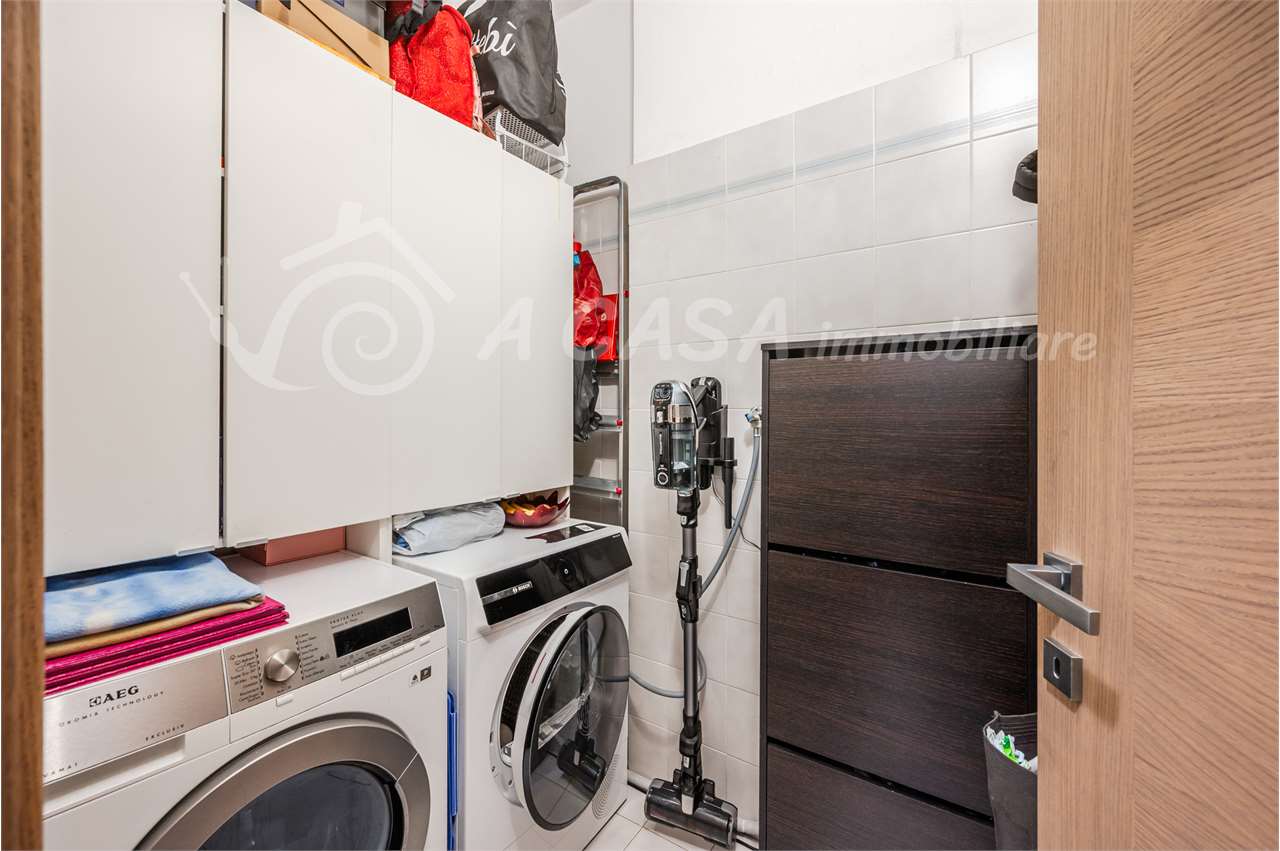 L'appartamento si apre su un ingresso che conduce ad un ampio soggiorno luminoso, ideale per momenti di relax e convivialità, con cucina a vista perfettamente integrata nell'ambiente living, la zona notte è composta da due camere da letto matrimoniali e un bagno. Il secondo bagno attualmente adibito a lavanderia ma facilmente ripristinabile come secondo bagno. Completa la soluzione un garage di 27mq e una cantina finestrata.