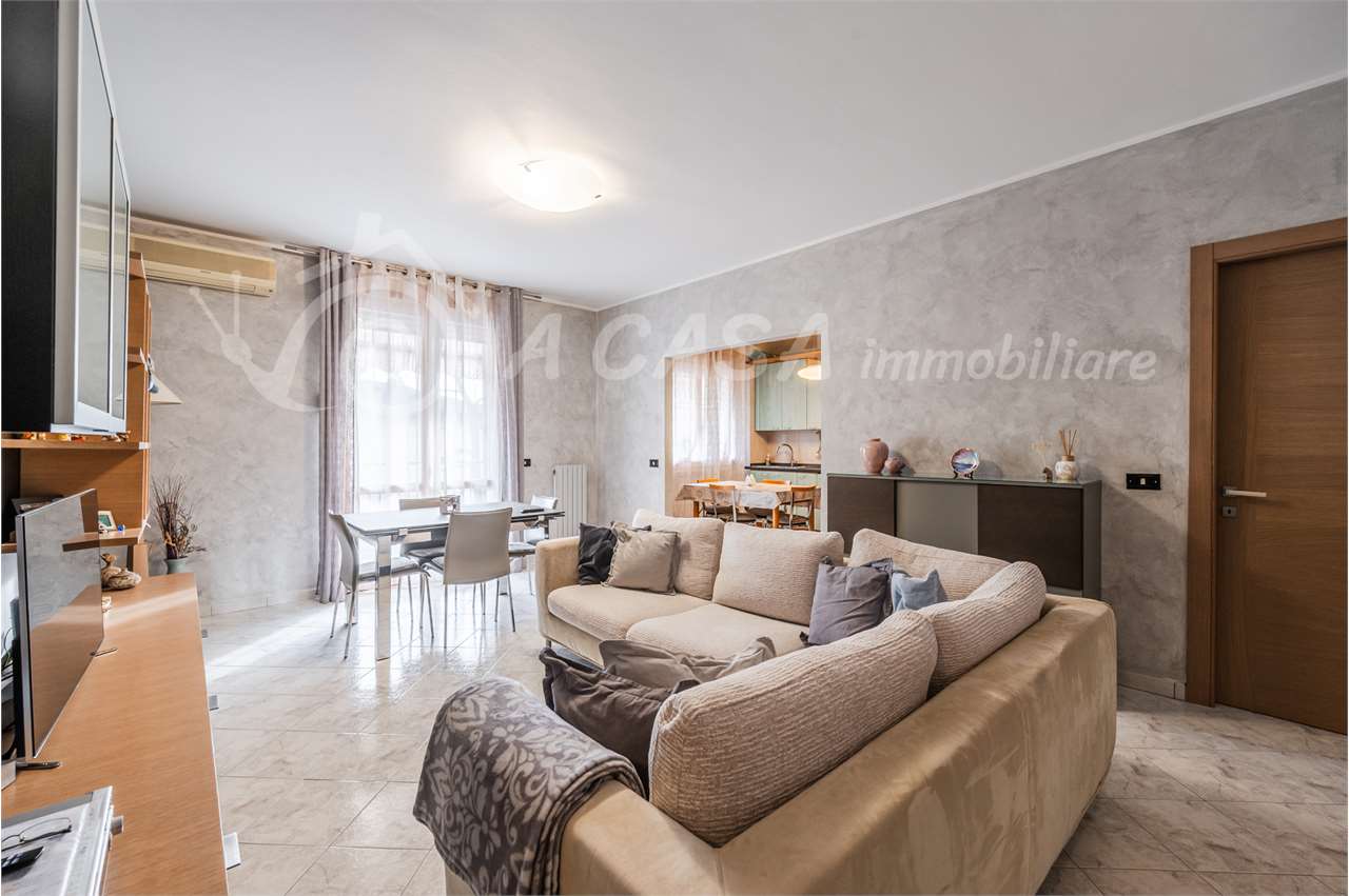 L'appartamento si apre su un ingresso che conduce ad un ampio soggiorno luminoso, ideale per momenti di relax e convivialità, con cucina a vista perfettamente integrata nell'ambiente living, la zona notte è composta da due camere da letto matrimoniali e un bagno. Il secondo bagno attualmente adibito a lavanderia ma facilmente ripristinabile come secondo bagno. Completa la soluzione un garage di 27mq e una cantina finestrata.