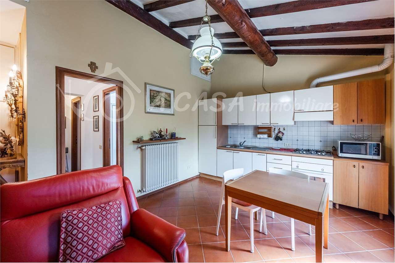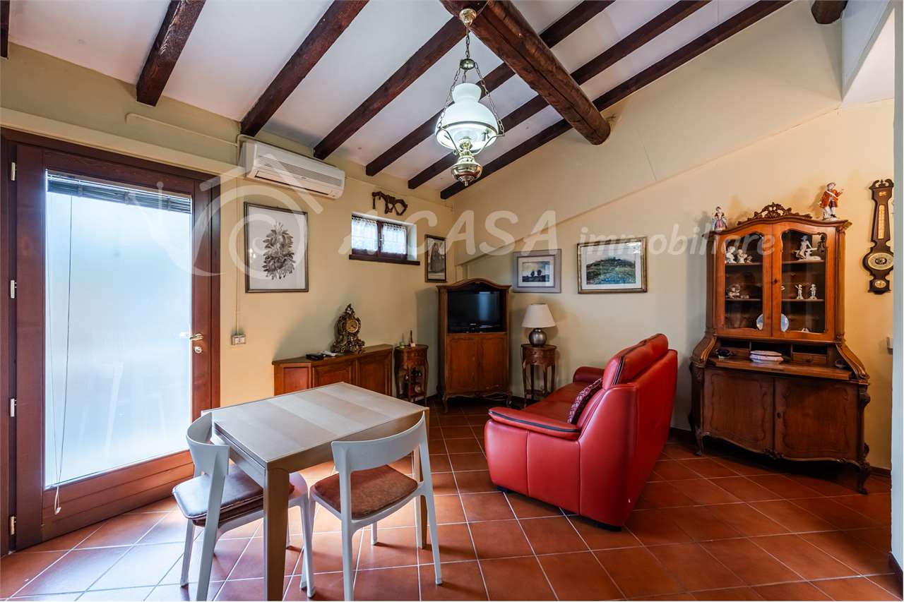 La soluzione è situata al primo piano di una palazzina di sole quattro unità abitative, si sviluppa su due livelli e si compone di ingresso in luminoso soggiorno con angolo cottura.