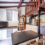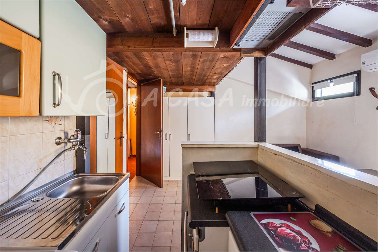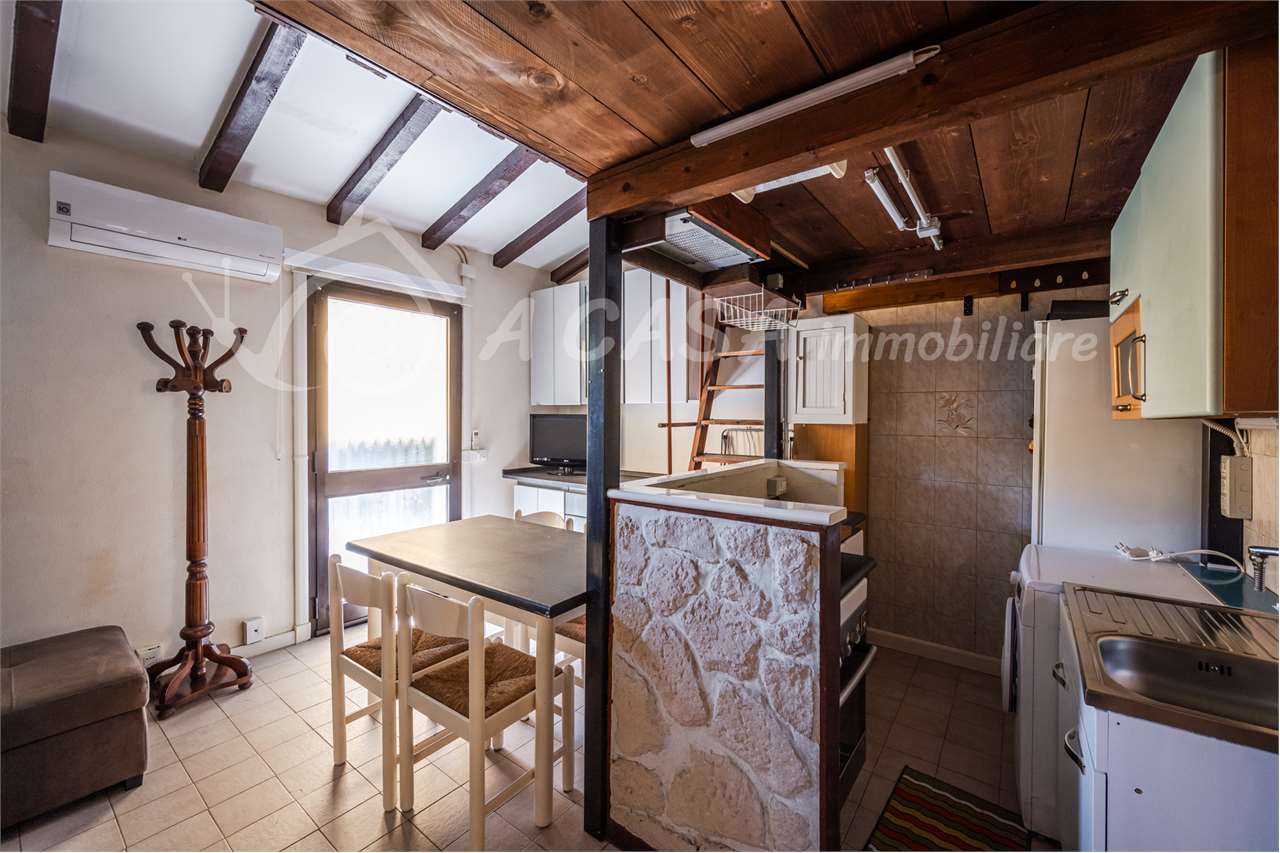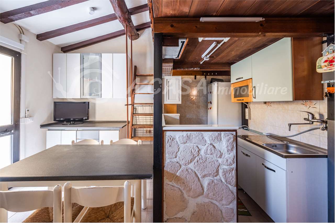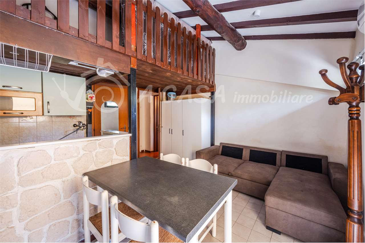 L’appartamento si compone di ingresso in luminoso soggiorno con angolo cottura e bagno con box doccia. Tramite scala in legno si accede ad un comodo soppalco.