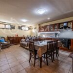 Tramite scala interna in legno si scende in taverna dove troviamo un ulteriore locale di oltre 40mq adibito a secondo soggiorno e cucina arricchito dalla presenza del secondo bagno a piano.